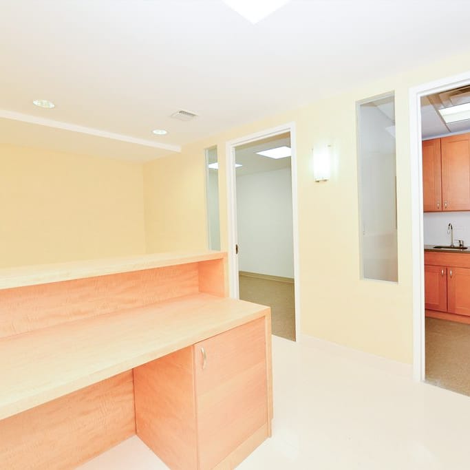 The space is bright and inviting with reception area; 3 large office rooms which can be converted to total of 6 rooms that can be used for doctors’ rooms/ examination rooms/ sterilization room or pantry all rooms are with windows; 1 file room, storage, or dark room. Private restroom easily accessible and disable accessible.